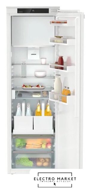 встраиваемый, без No Frost, электронное управление, полезный объём: 266 л (250 + 16 л), зона свежести, перенавешиваемые двери, автодоводчик дверей, складная полка, полка для вина, лоток для яиц, 55.9x54.6x177 см, белый