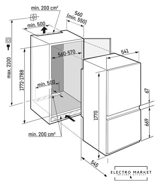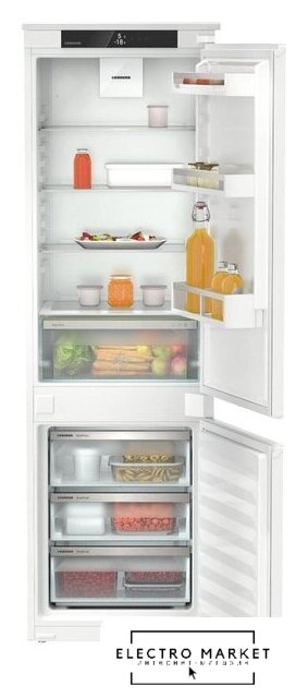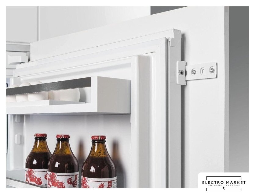 встраиваемый, скользящие направляющие, без No Frost, электронное управление, класс A+, полезный объём: 272 л (209 + 63 л), перенавешиваемые двери, лоток для яиц, 54.1x54.8x177.2 см, белый