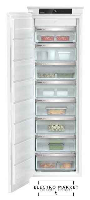 встраиваемый, жесткое, No Frost (морозильная камера), сенсорное управление, полезный объём: 253 л (183 + 70 л), автодоводчик дверей, выдвижная полка, складная полка, полка для вина, лоток для яиц, 54.1x54.5x177 см, белый