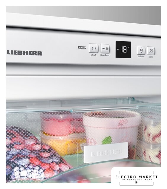 встраиваемый, плоские шарниры, без No Frost, электронное управление, полезный объём: 286 л (252 + 34 л), перенавешиваемые двери, выдвижная полка, складная полка, лоток для яиц, 55.8x54.5x177.2 см, белый