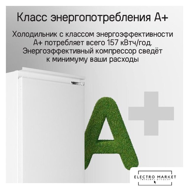 встраиваемый, жесткое, No Frost (морозильная камера), электронное управление, класс A+, полезный объём: 197 л, перенавешиваемые двери, 54x54.5x177 см, белый