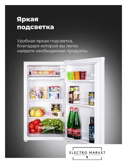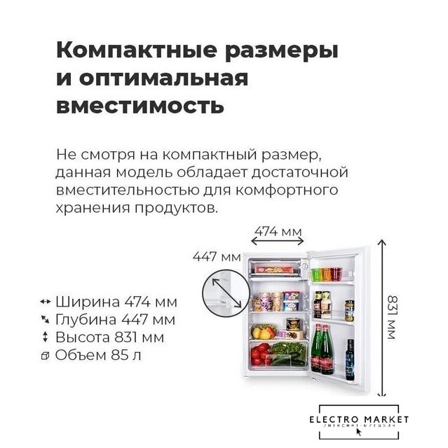 отдельностоящий, без No Frost, механическое управление, класс A+, полезный объём: 85 л, перенавешиваемые двери, лоток для яиц, 47.4x44.7x83.1 см, белый