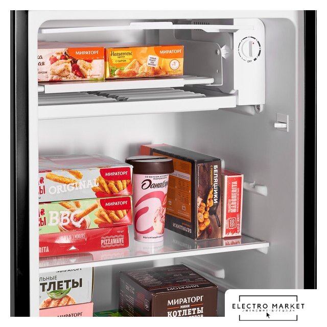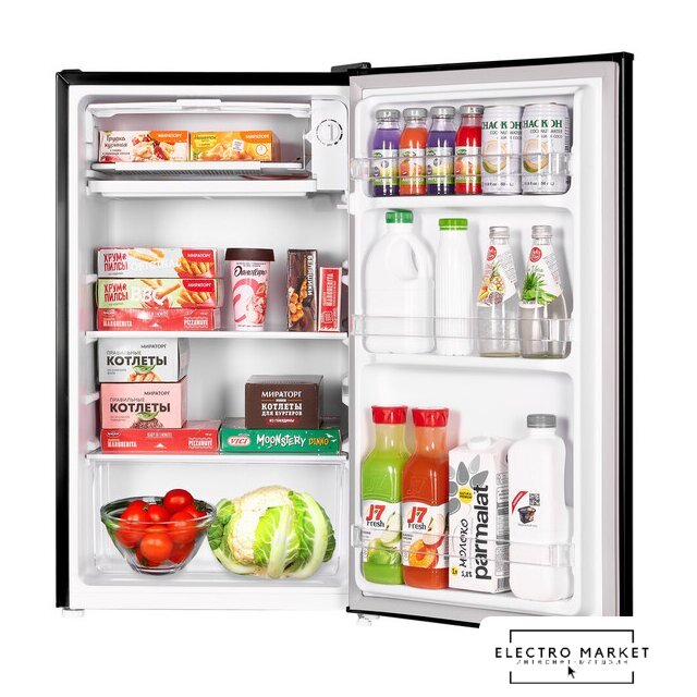 отдельностоящий, без No Frost, механическое управление, класс A+, полезный объём: 85 л, перенавешиваемые двери, лоток для яиц, 47.4x44.7x83.1 см, черный