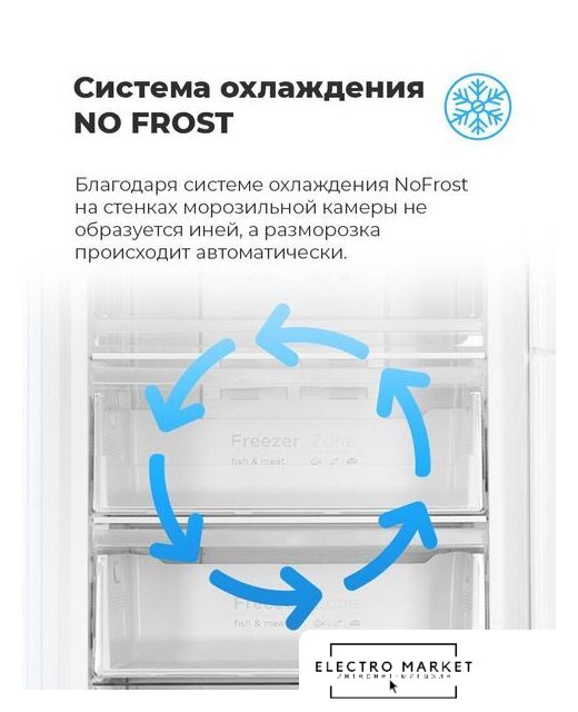 отдельностоящий, полный No Frost, электронное управление, класс A+, полезный объём: 344 л (235 + 109 л), зона свежести, перенавешиваемые двери, лоток для яиц, 59.4x64.5x195 см, нержавеющая сталь