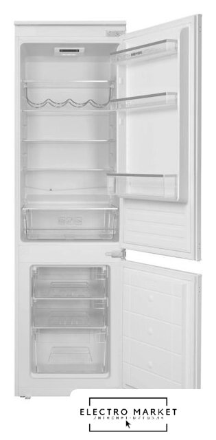 встраиваемый, без No Frost, механическое управление, класс A++, полезный объём: 260 л (190 + 70 л), перенавешиваемые двери, полка для вина, лоток для яиц, 54x54x177.6 см, белый