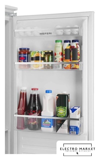встраиваемый, без No Frost, механическое управление, класс A, полезный объём: 234 л (167 + 67 л), перенавешиваемые двери, лоток для яиц, 54x56x178 см, белый
