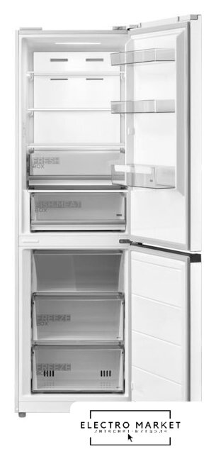 отдельностоящий, без No Frost, электронное управление, класс A+, полезный объём: 262 л (187 + 75 л), перенавешиваемые двери, лоток для яиц, 57.8x60x179 см, белый