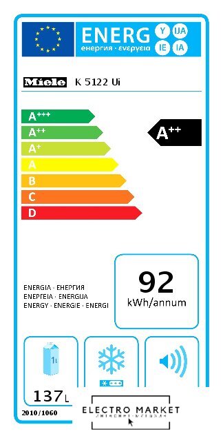 встраиваемый, полный No Frost, электронное управление, класс A++, полезный объём: 254 л (185 + 69 л), инверторный компрессор, зона свежести, перенавешиваемые двери, полка для вина, лоток для яиц, 54x54.5x177.5 см, белый