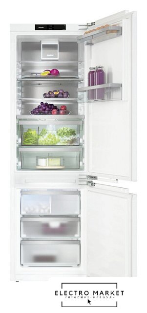 встраиваемый, полный No Frost, сенсорное управление, полезный объём: 255 л (184 + 71 л), перенавешиваемые двери, автодоводчик дверей, лоток для яиц, 55.9x54.6x177 см, белый