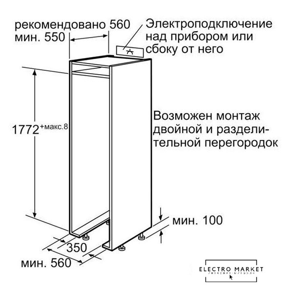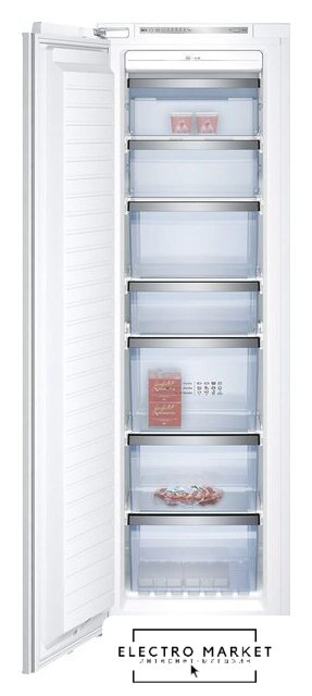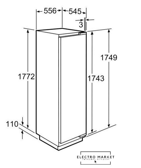 встраиваемый, плоские шарниры, электронное управление, класс A++, полезный объём: 306 л, зона свежести, перенавешиваемые двери, полка для вина, лоток для яиц, 55.6x54.5x174.9 см, белый