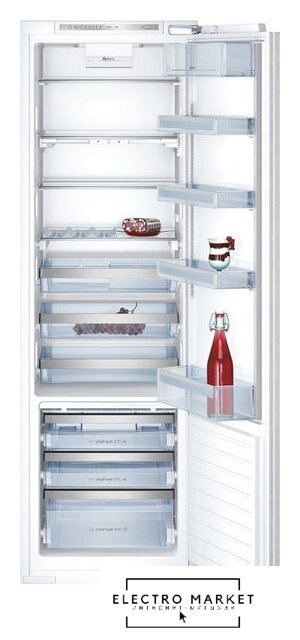 встраиваемый, жесткое, No Frost (морозильная камера), электронное управление, полезный объём: 523 л (363 + 160 л), зона свежести, перенавешиваемые двери, автодоводчик дверей, полка для вина, лоток для яиц, 91x61x202.7 см, серебристый