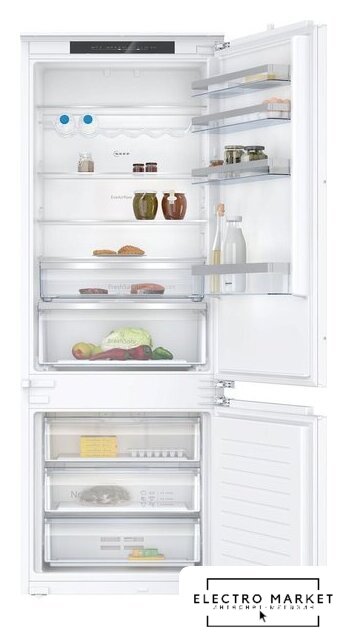 встраиваемый, жесткое, No Frost (морозильная камера), электронное управление, класс A++, полезный объём: 237 л (175 + 62 л), зона свежести, лоток для яиц, 55.9x54.5x177 см, белый