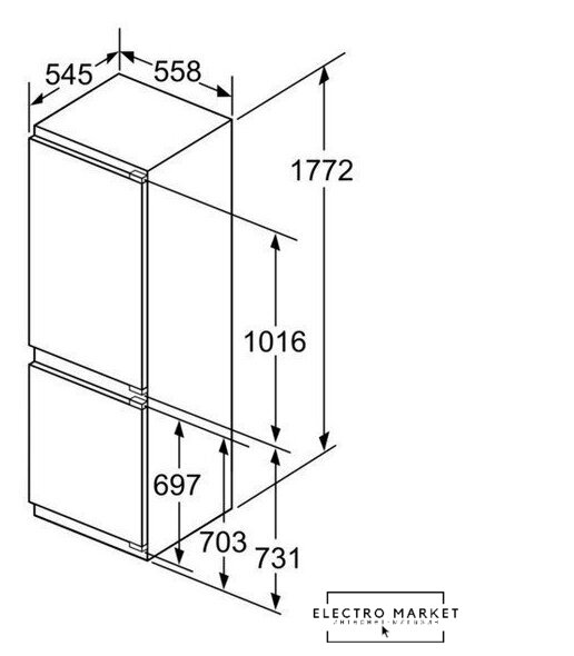 встраиваемый, без No Frost, сенсорное управление, полезный объём: 174 л, перенавешиваемые двери, складная полка, лоток для яиц, масленка, 55.9x54.6x121.3 см, белый