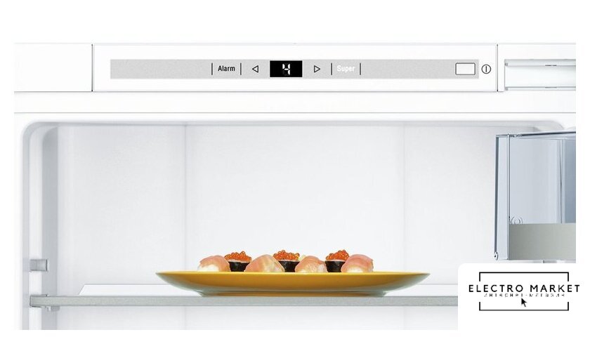 встраиваемый, скользящие направляющие, без No Frost, сенсорное управление, класс A++, полезный объём: 255 л (201 + 54 л), зона свежести, перенавешиваемые двери, складная полка, лоток для яиц, 54.1x54.5x177 см, белый