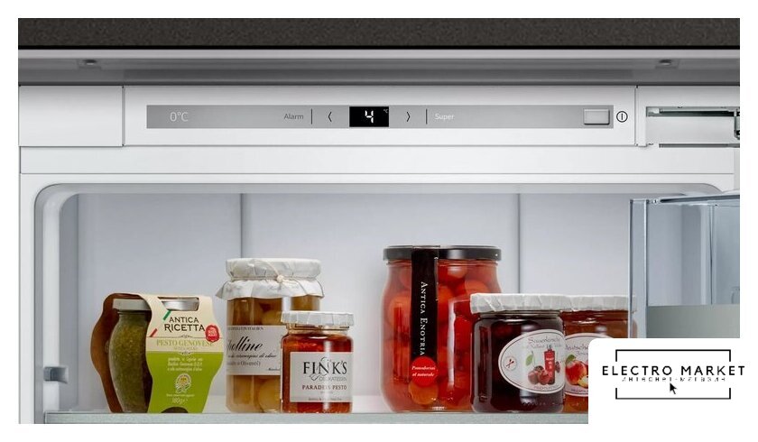 встраиваемый, без No Frost, электронное управление, класс A++, полезный объём: 284 л (257 + 27 л), зона свежести, перенавешиваемые двери, полка для вина, лоток для яиц, 55.9x54.4x177 см, белый