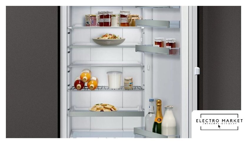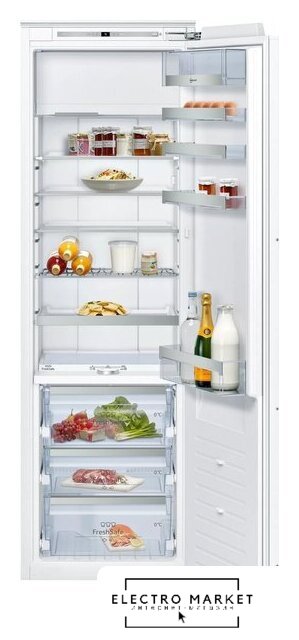встраиваемый, No Frost (морозильная камера), электронное управление, полезный объём: 256 л (202 + 54 л), зона свежести, перенавешиваемые двери, автодоводчик дверей, складная полка, лоток для яиц, масленка, 55.9x54.6x177 см, белый
