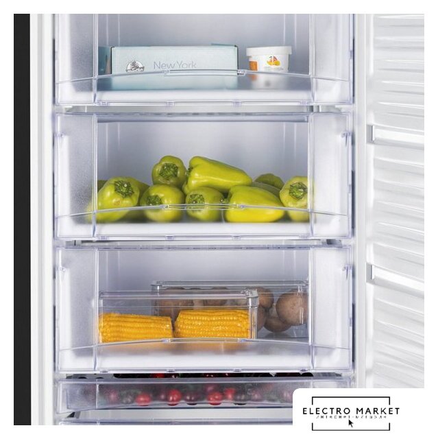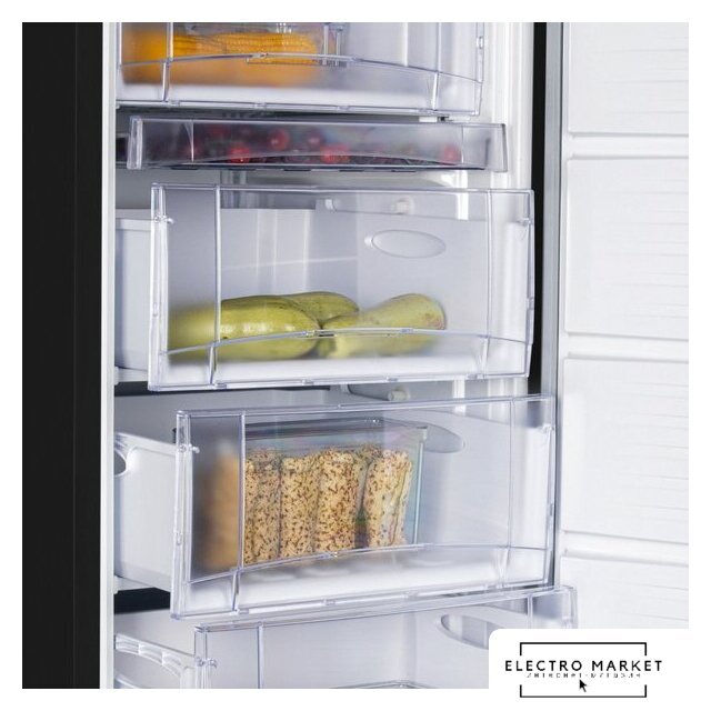 отдельностоящий, без No Frost, электронное управление, класс A+, полезный объём: 261 л (182 + 79 л), перенавешиваемые двери, лоток для яиц, 59.5x62.9x156.8 см, белый