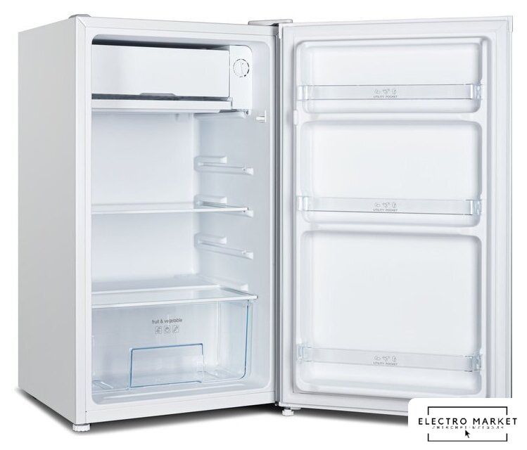 отдельностоящий, без No Frost, механическое управление, класс A+, полезный объём: 85 л, перенавешиваемые двери, лоток для яиц, 47.4x44.7x83.1 см, черный