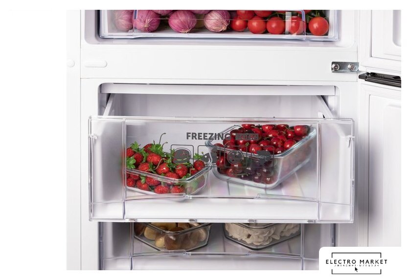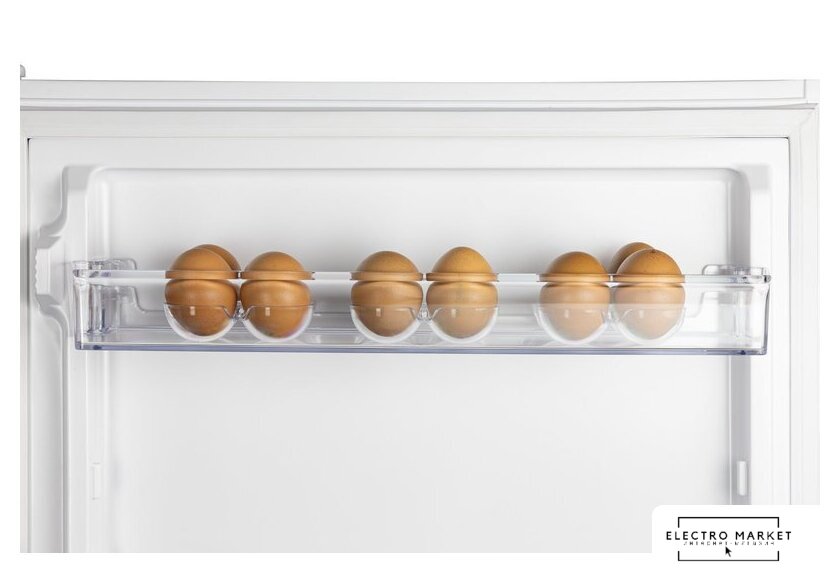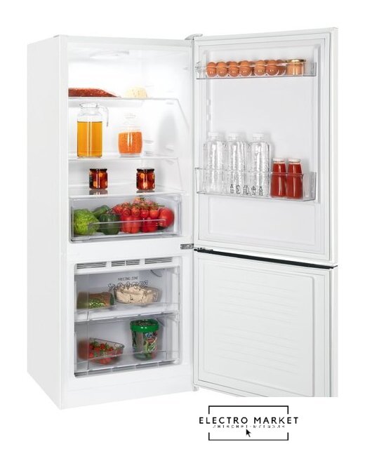 отдельностоящий, без No Frost, механическое управление, класс A+, полезный объём: 263 л (169 + 94 л), перенавешиваемые двери, лоток для яиц, 57.4x62.5x172.4 см, белый