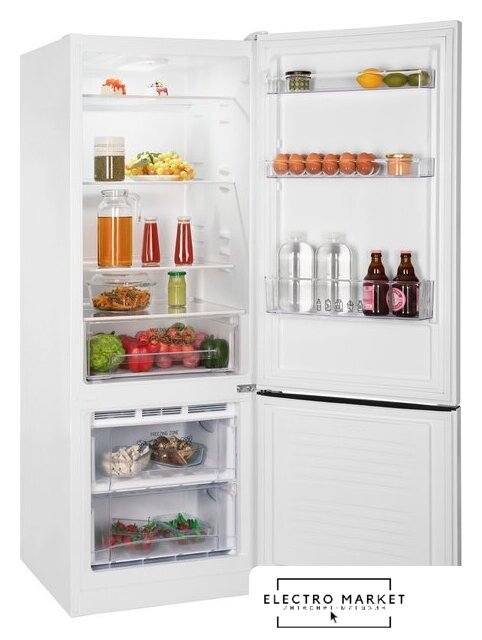 отдельностоящий, полный No Frost, механическое управление, класс A+, полезный объём: 262 л (201 + 61 л), перенавешиваемые двери, лоток для яиц, 55x60x180 см, белый