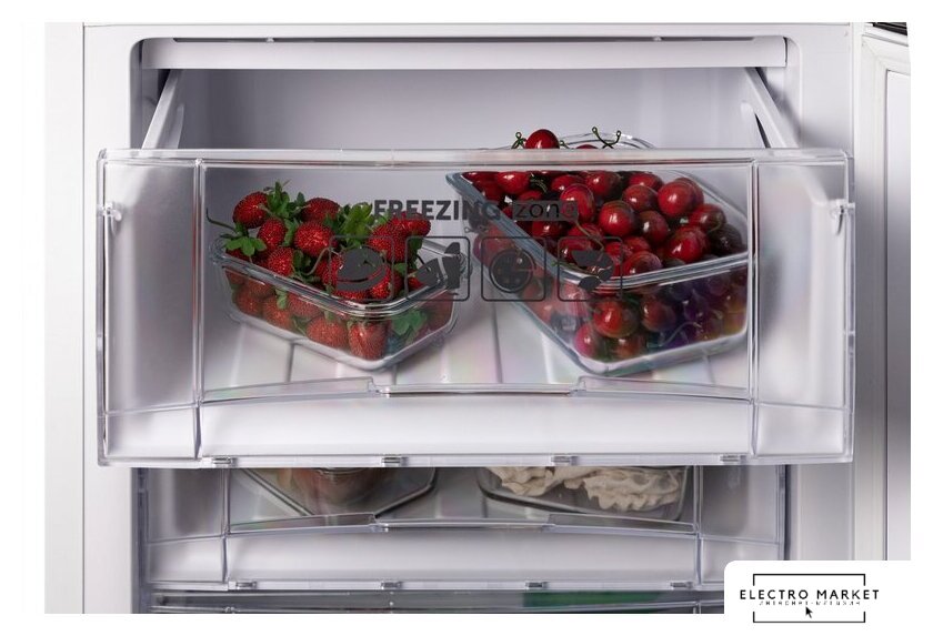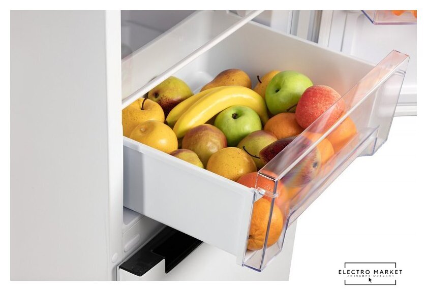 отдельностоящий, полный No Frost, механическое управление, класс A+, полезный объём: 262 л (201 + 61 л), перенавешиваемые двери, лоток для яиц, 55x60x180 см, белый
