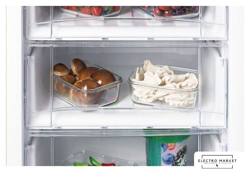 отдельностоящий, полный No Frost, электронное управление, класс A, полезный объём: 333 л (227 + 106 л), перенавешиваемые двери, лоток для яиц, 59.5x65.7x185 см, белый