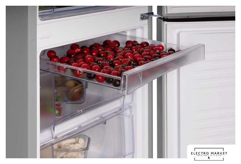 отдельностоящий, полный No Frost, электронное управление, класс A+, полезный объём: 350 л (252 + 98 л), перенавешиваемые двери, лоток для яиц, 59.5x66x195.2 см, белый