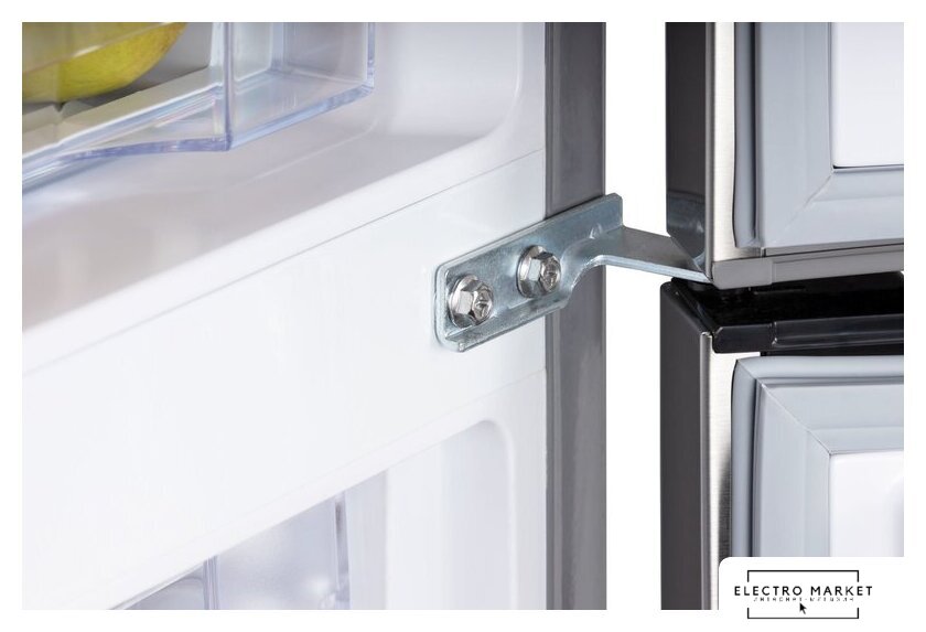 отдельностоящий, без No Frost, электронное управление, класс A+, полезный объём: 341 л (182 + 159 л), перенавешиваемые двери, полка для вина, лоток для яиц, 59.5x62.9x196.8 см, черный металлик