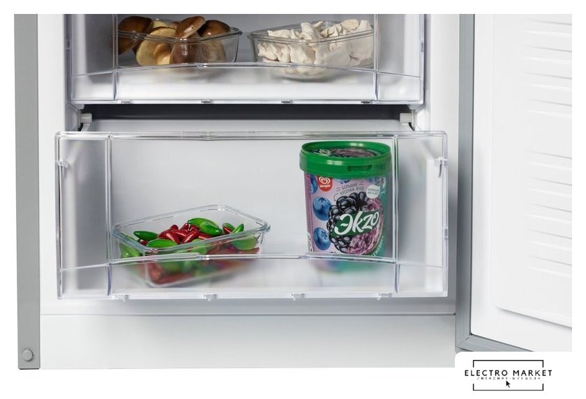 отдельностоящий, без No Frost, электронное управление, класс A+, полезный объём: 364 л (205 + 159 л), зона свежести, перенавешиваемые двери, полка для вина, лоток для яиц, 59.5x62.9x206.8 см, серебристый