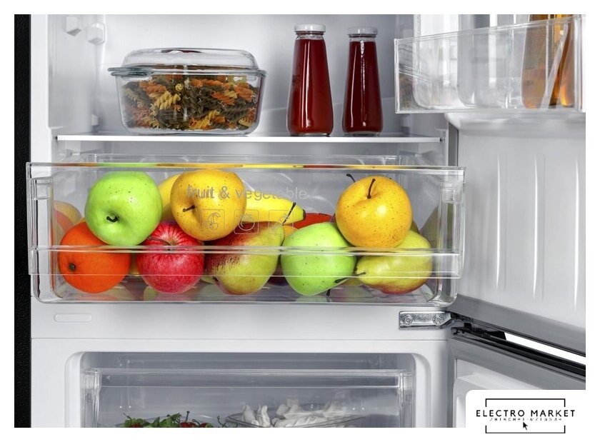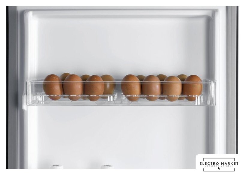 отдельностоящий, без No Frost, электронное управление, класс A+, полезный объём: 301 л (182 + 119 л), перенавешиваемые двери, полка для вина, лоток для яиц, 59.5x62.9x176.8 см, белый