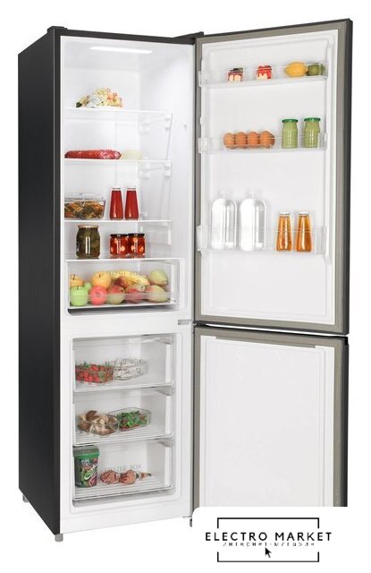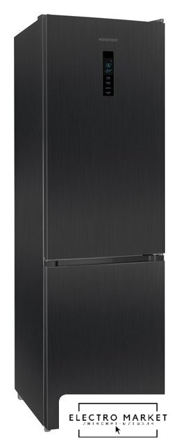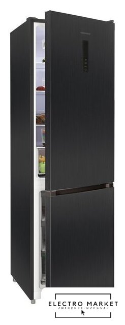 отдельностоящий, полный No Frost, электронное управление, класс A+, полезный объём: 384 л (277 + 107 л), инверторный компрессор, перенавешиваемые двери, лоток для яиц, 59.5x68.2x203 см, графит