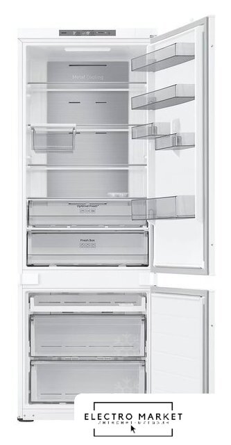 встраиваемый, скользящие направляющие, полный No Frost, электронное управление, полезный объём: 394 л (295 + 99 л), зона свежести, перенавешиваемые двери, подставка-лоток для бутылок, лоток для яиц, 69x55.1x193.5 см, белый