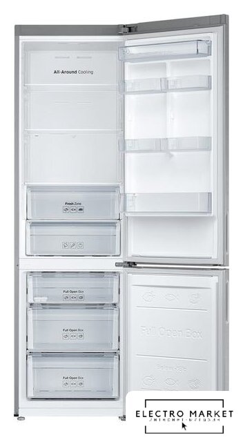 отдельностоящий, полный No Frost, электронное управление, класс A, полезный объём: 371 л (271 + 100 л), перенавешиваемые двери, лоток для яиц, 69.5x65.4x195.9 см, нержавеющая сталь