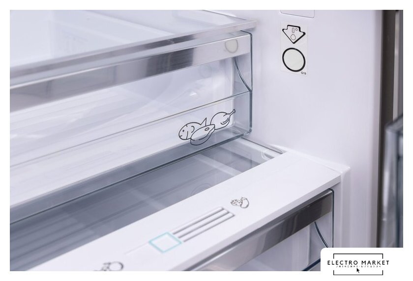 отдельностоящий, No Frost (морозильная камера), сенсорное управление, класс A+++, полезный объём: 319 л (225 + 94 л), инверторный компрессор, перенавешиваемые двери, складная полка, полка для вина, выдвижной/подвесной контейнер, подставка-лоток для бутылок, лоток для яиц, отделка: защита от отпечатков, 59.7x67.5x185.5 см, темная сталь