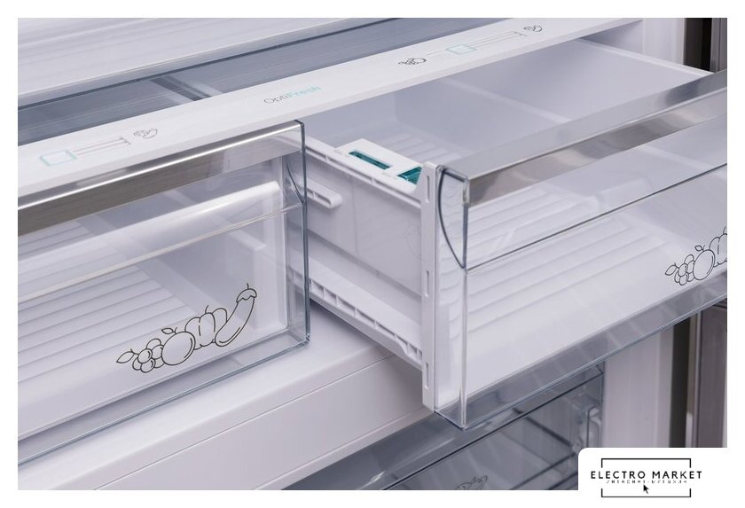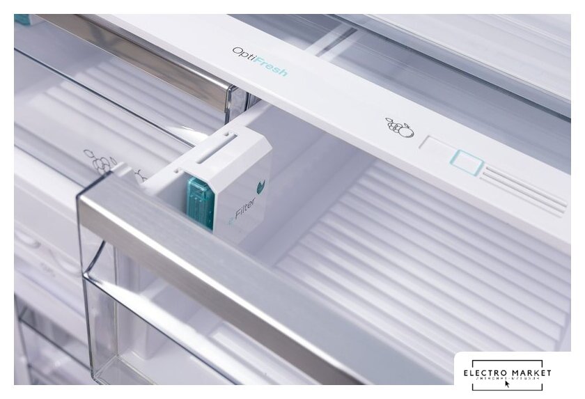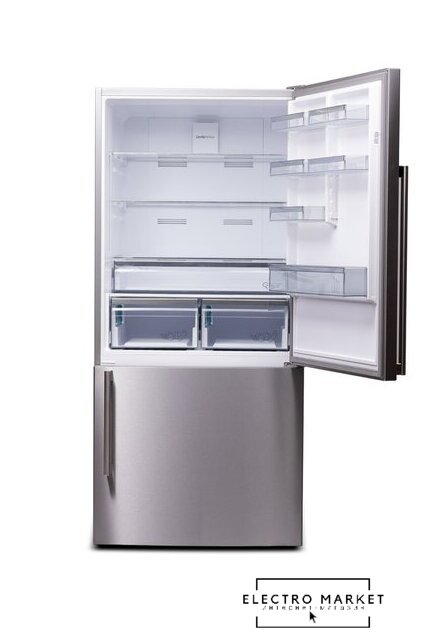 отдельностоящий, полный No Frost, электронное управление, класс A++, полезный объём: 536 л (388 + 148 л), инверторный компрессор, зона свежести, выдвижная полка, лоток для яиц, 80x73.5x175 см, бежевый