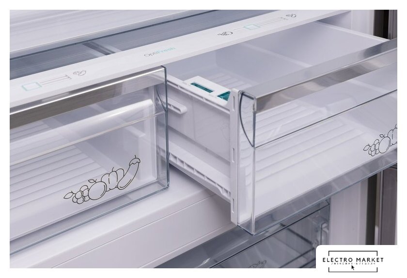 отдельностоящий, No Frost (морозильная камера), сенсорное управление, класс A+++, полезный объём: 360 л (266 + 94 л), инверторный компрессор, перенавешиваемые двери, складная полка, полка для вина, лоток для яиц, отделка: защита от отпечатков, 59.7x67.5x201.5 см, темная сталь