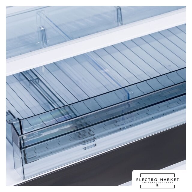 отдельностоящий, полный No Frost, электронное управление, класс A++, полезный объём: 413 л (250 + 163 л), инверторный компрессор, зона свежести, лоток для яиц, отделка: стекло, 77x60x193.5 см, серый