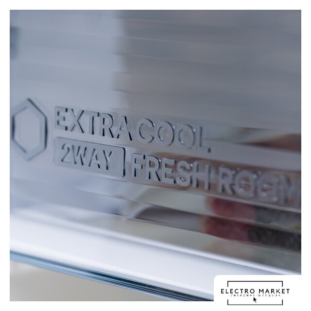 отдельностоящий, полный No Frost, электронное управление, класс A++, полезный объём: 413 л (250 + 163 л), инверторный компрессор, зона свежести, лоток для яиц, отделка: стекло, 77x60x193.5 см, серый