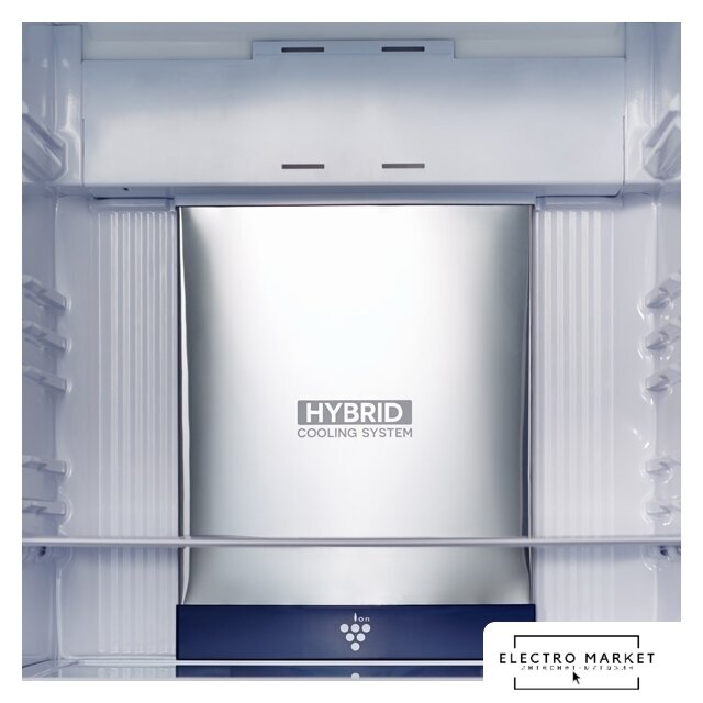 отдельностоящий, полный No Frost, сенсорное управление, полезный объём: 682 л (496 + 186 л), инверторный компрессор, зона свежести, перенавешиваемые двери, диспенсер, выдвижной/подвесной контейнер, подставка-лоток для бутылок, лоток для яиц, 86x84x186 см, белый