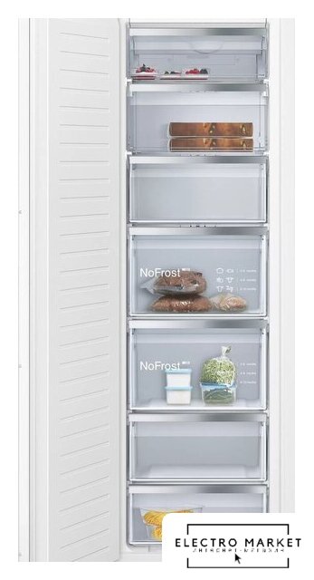 встраиваемый, No Frost (морозильная камера), сенсорное управление, полезный объём: 260 л (184 + 76 л), зона свежести, перенавешиваемые двери, полка для вина, лоток для яиц, 54.1x54.8x177.2 см, белый