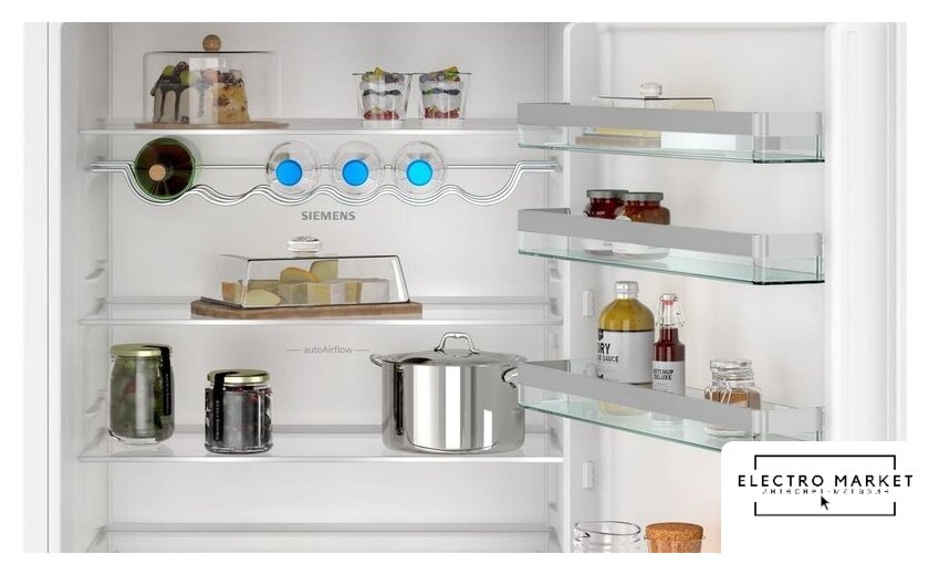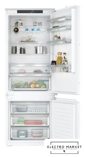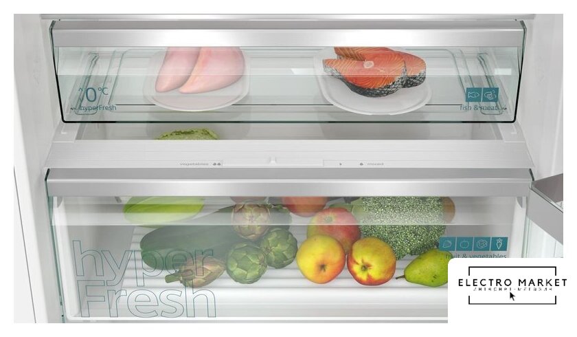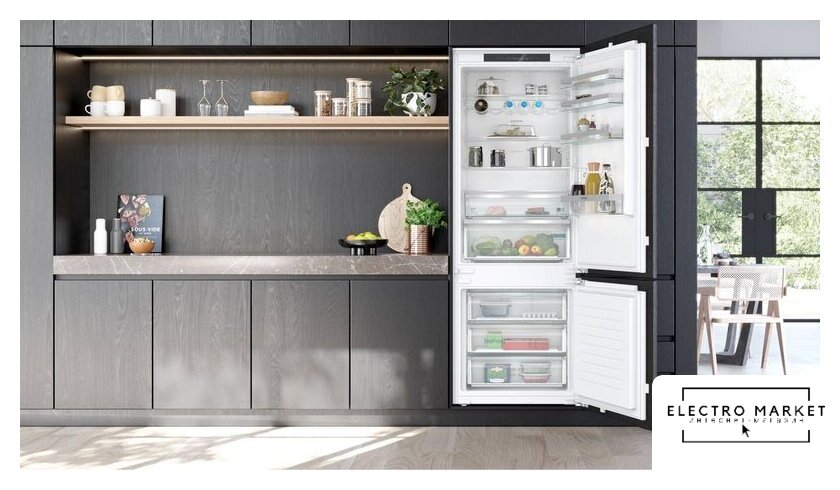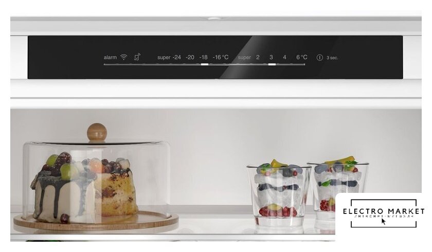 встраиваемый, полный No Frost, сенсорное управление, класс A+++, полезный объём: 260 л (184 + 76 л), зона свежести, перенавешиваемые двери, полка для вина, лоток для яиц, 55.8x54.8x177.2 см, белый