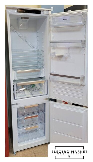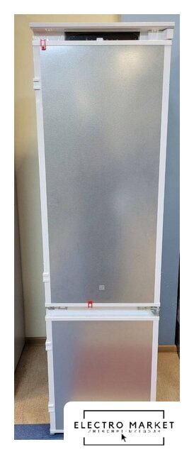 встраиваемый, плоские шарниры, полный No Frost, электронное управление, класс A+, полезный объём: 255 л (188 + 67 л), перенавешиваемые двери, лоток для яиц, 54.1x54.5x177.2 см, белый