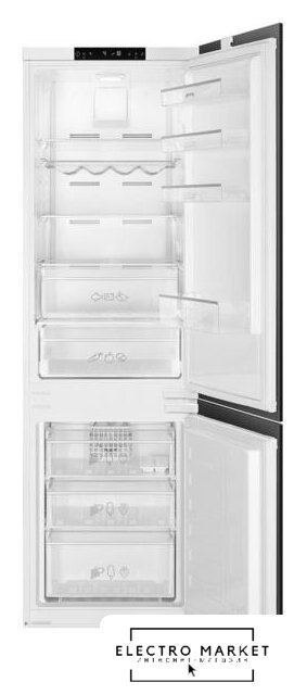 встраиваемый, жесткое, No Frost (морозильная камера), сенсорное управление, класс A+, полезный объём: 241 л, зона свежести, перенавешиваемые двери, автодоводчик дверей, складная полка, лоток для яиц, 55.9x54.6x177 см, белый