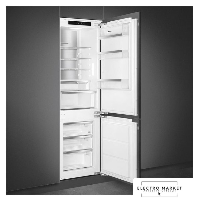 встраиваемый, без No Frost, сенсорное управление, полезный объём: 223 л, зона свежести, перенавешиваемые двери, складная полка, лоток для яиц, 55.9x54.6x139.5 см, белый