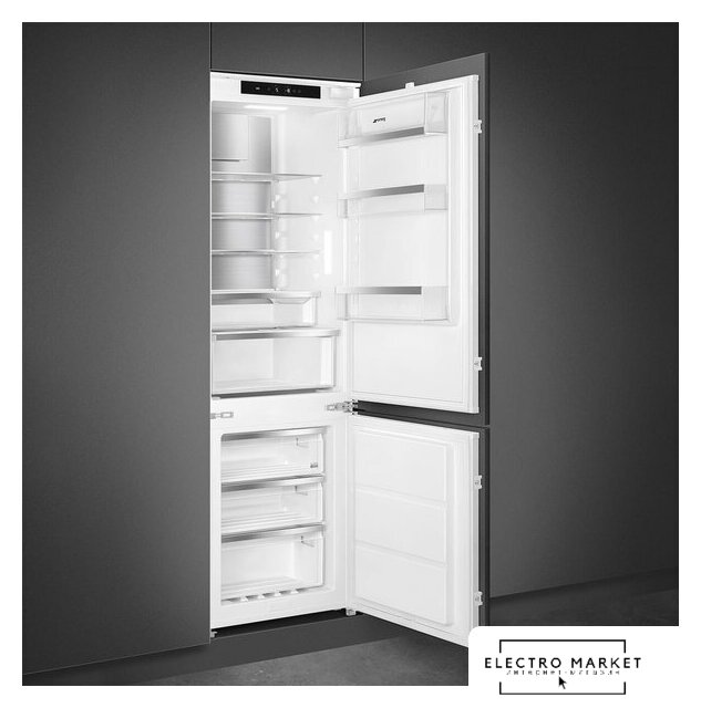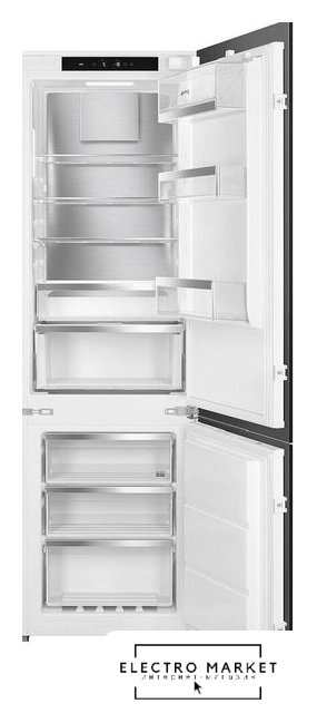 встраиваемый, без No Frost, электронное управление, полезный объём: 250 л (182 + 68 л), перенавешиваемые двери, полка для вина, 54x54.5x177 см, белый