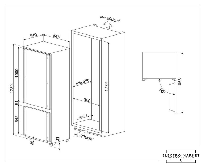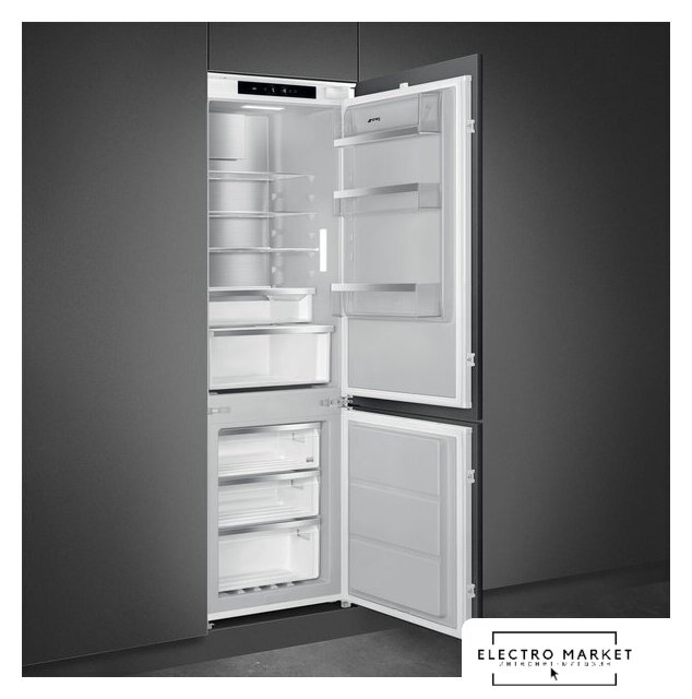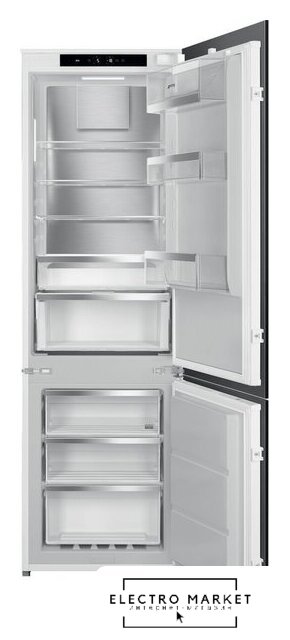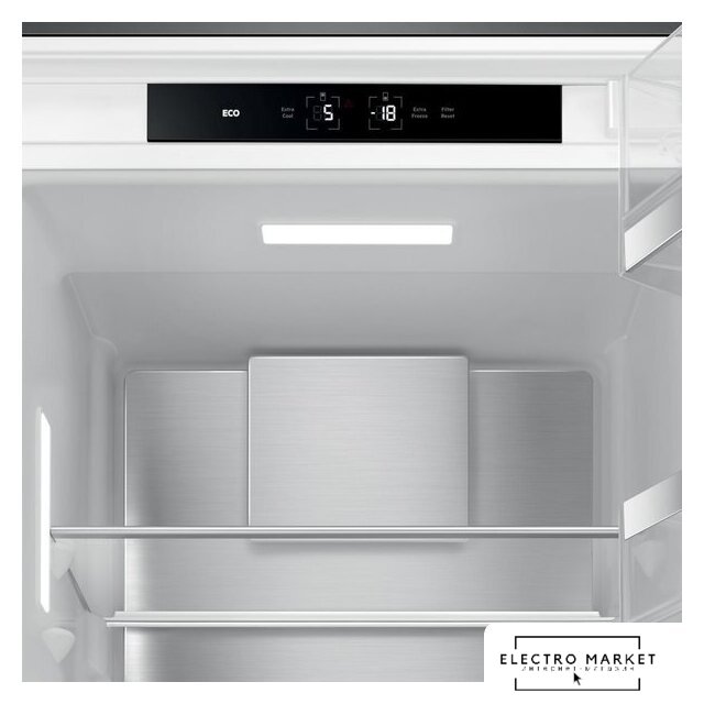 встраиваемый, полный No Frost, электронное управление, зона свежести, перенавешиваемые двери, нулевой зазор, подставка-лоток для бутылок, 54.1x54.8x177.2 см, белый