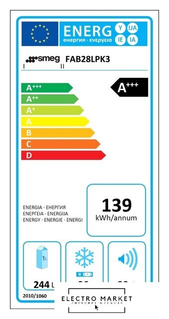 отдельностоящий, без No Frost, механическое управление, класс A+++, полезный объём: 270 л (244 + 26 л), инверторный компрессор, зона свежести, лоток для яиц, отделка: узор, ретродизайн, 60.1x78.8x150 см, розовый