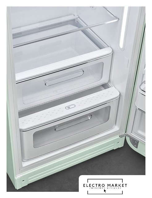 отдельностоящий, без No Frost, механическое управление, класс A+++, полезный объём: 270 л (244 + 26 л), инверторный компрессор, зона свежести, лоток для яиц, отделка: узор, ретродизайн, 60.1x78.8x150 см, белый