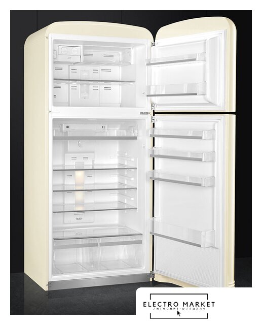 отдельностоящий, без No Frost, механическое управление, класс A+++, полезный объём: 270 л (244 + 26 л), инверторный компрессор, зона свежести, лоток для яиц, отделка: ретродизайн, 60.1x78.8x150 см, желтый