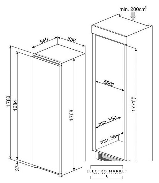 встраиваемый, No Frost (морозильная камера), электронное управление, полезный объём: 248 л (186 + 62 л), зона свежести, перенавешиваемые двери, лоток для яиц, 54.6x54.9x177.2 см